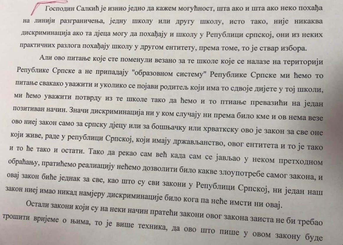 Nakon upita na samoj sjednici predsjednik Vlade entiteta Rs, Radovan Višković, odgovorio je narodnom poslaniku Salkiću kako stoji u stenogramu sa sjednice:
